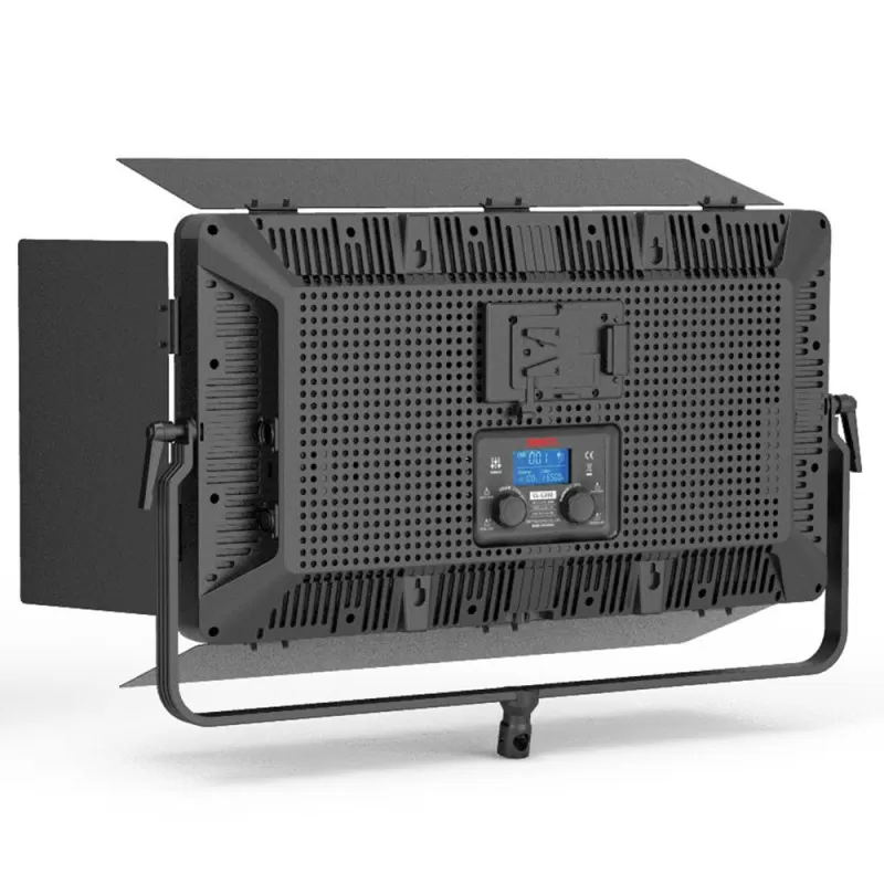 Le Swit CL-120D est un panneau lumineux à LED de 120 watts. Il contient 1800 ampoules LED SMD qui offrent un bon éclairement, un angle de rayonnement plus large, un indice d’affichage plus élevé, des couleurs vives plus douces et une durée de vie plus longue. Cela fait du CL-120D une source lumineuse idéale pour les studios de diffusion, les écrans verts, les interviews et les livestreams.